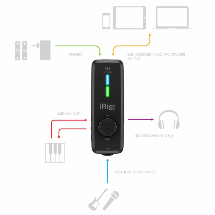 Το IRIG Pro I/O έχει σχεδιαστεί για να είναι εύκολο στη χρήση με όλες τις συσκευές σας όπως: μικρόφωνα στούντιο, μικρόφωνα φωνητικών, κιθάρες, μπάσα, πλήκτρα. το IRIG Pro I/O μπορεί να χειριστεί τεράστιο εύρος συσκευών.