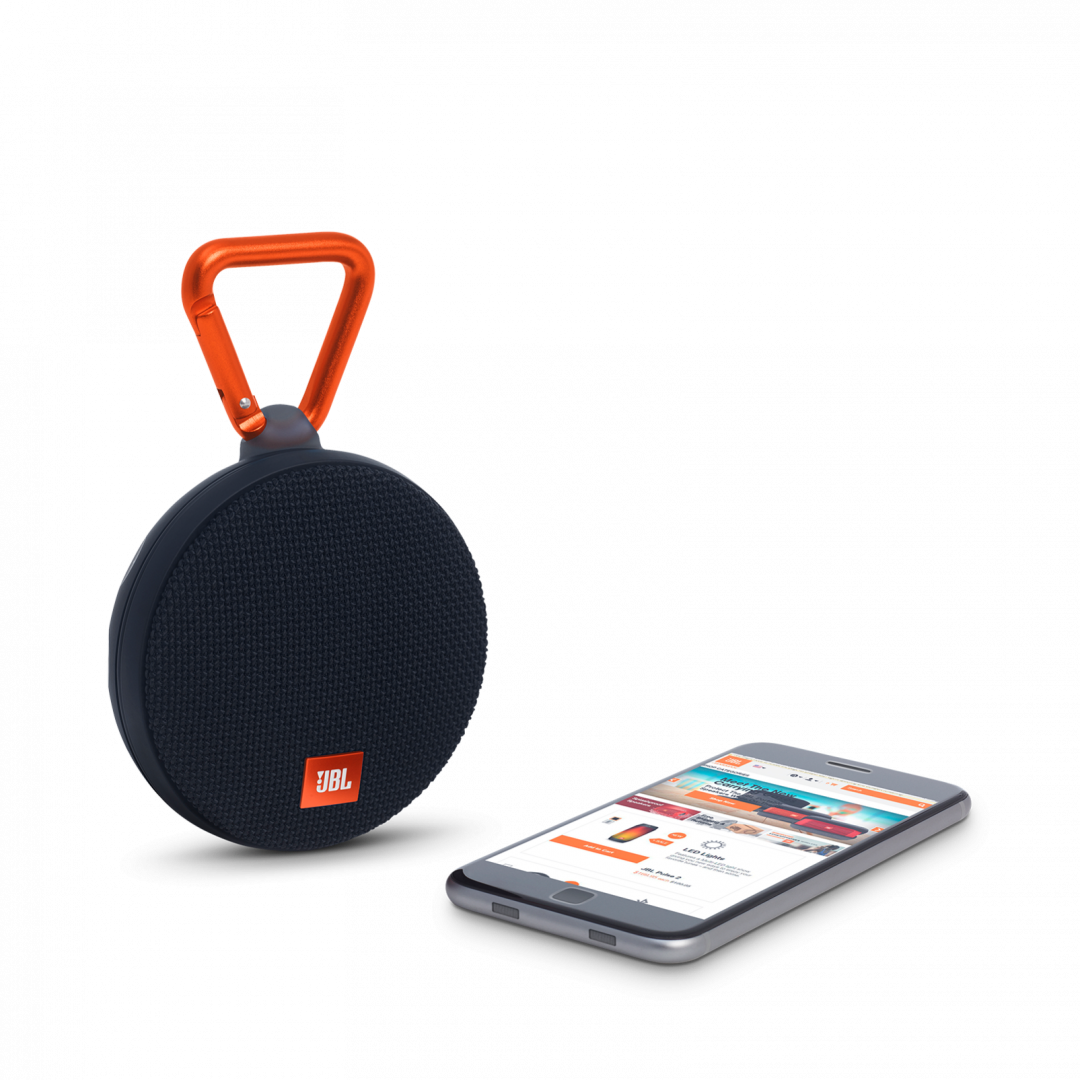 Το Clip 2 από την JBL, είναι ένα ελαφρύ, ανθεκτικό και ισχυρό φορητό ηχείο. Απόλυτα αδιάβροχο, παρέχει 8 ώρες αυτονομία και σύνδεση με συσκευές μέσω Bluetooth. Εφικτή είναι η συνεργασία/συνδεσιμότητα δυο Clip 2 προϊόντων με σκοπό την παραγωγή ενισχυμένου ήχου. Παρέχεται η δυνατότητα να απαντήσετε τηλεφωνικές κλήσεις μέσω του ενσωματωμένου μικροφώνου που περιέχει.