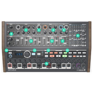 Διαθέτει φίλτρο πολλαπλών επιλογών προσομοίωσης (MS-20/Polysix/HPF κ.α), arpeggiator, pitch, modulation wheels, vector joystick και ενσωματωμένη μονάδα εφέ.