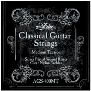 Trebles: Clear Nylon – Basses: Silver-Plated Wound – Medium Tension