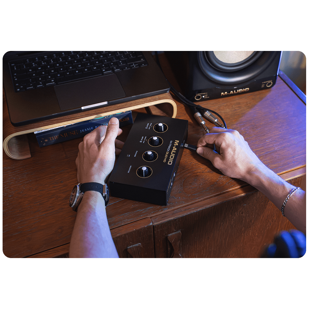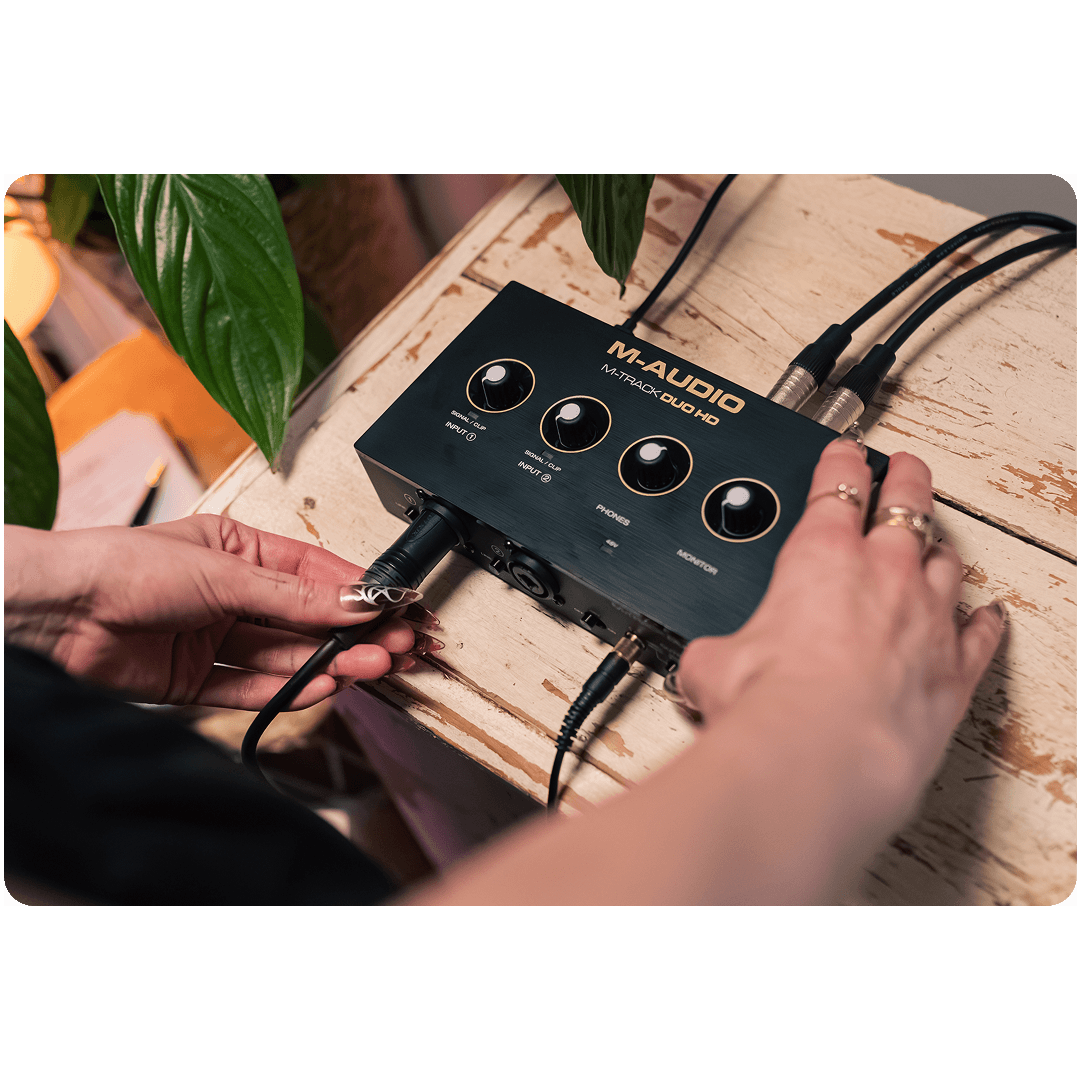 Επαγγελματική ανάλυση 24‑bit / 192 kHz με μηδενική καθυστέρηση monitoring. Δύο συνδυαστικές είσοδοι XLR / TRS, έξοδοι TRS ¼″ & ανεξάρτητο phones. 55 dB Crystal™ gain & phantom +48 V για πυκνωτικά μικρόφωνα στούντιο. Συμπαγές σώμα 0,36 kg – ιδανικό για home‑studio, mobile sessions ή podcasting. Το M‑Track Duo HD εξελίσσεται μαζί με το δημιουργικό σας ταξίδι: από τα πρώτα demos μέχρι επαγγελματικά podcasts, προσφέροντας καθαρότητα, ακρίβεια και την ευκολία μιας διεπαφής USB‑C plug‑and‑play. Οι A/D μετατροπείς επαγγελματικής ποιότητας και η παρακολούθηση μηδενικής καθυστέρησης διασφαλίζουν ότι κάθε λεπτομέρεια καταγράφεται με πιστότητα, ενώ το Producer Essentials Software Pack (αξίας $1 200+) συνοδεύει τη συσκευή για έμπνευση χωρίς περιορισμούς.