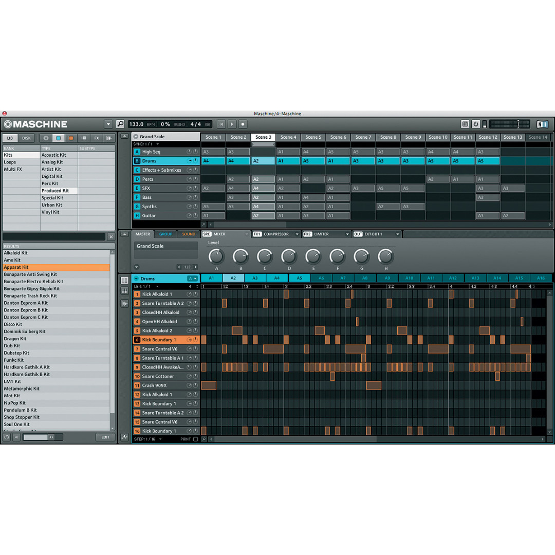 Στο οπλοστάσιο του περιλαμβάνει ακόμα 23 υψηλής ποιότητας εφφέ (TRANSIENT MASTER, Tape και Tube Saturators, reverbs, filters, Eqs, Grain-Delay, Ice Verb, Freq Shifter κ.α.). Διαβάζει τα preset από όλες τις εκδόσεις του KOMPLETE και υποστηρίζει VST® και Audio Units™ plug-ins, ενώ μπορεί και το ίδιο να τρέξει σαν plug-in στο αγαπημένο σας πρόγραμμα ηχογράφησης. Για πρώτη φορά με την έκδοση 1.8 του software παίρνουμε δώρο το MASSIVE, το μεγαθήριο και ιδιαιτέρως δημοφιλές synth της εταιρίας. Μάζι του παίρνουμε και παραπάνω από 6 GB samples έτοιμα για χρήση, συμπεριλαμβανομένων προηχογραφημένων patterns και εφφέ για διάφορα στυλ μουσικής, με drum loops, μπάσα, synth και άλλα όργανα, πολλά από αυτά φτιαγμένα από καταξιωμένους καλλιτέχνες και παραγωγούς, καθώς και τα REAKTOR, KONTAKT και GUITAR RIG PLAYER plug-ins και ήχους από το KOMPLETE ELEMENTS. Πάντα υπάρχει η δυνατότητα άπειρης επέκτασης της βιβλιοθήκης του μέσω των MASCHINE EXPANSION και της βιβλιοθήκης του KOMPLETE. Συνολικά μαζί του παίρνουμε 7,000 one-shots, πάνω από 400 sliced loops, 326 drum kits με 1,400 patterns, 388 multi-sampled instruments (ακουστικά και μη), 189 FX/multi-FX presets και 60 demo projects.