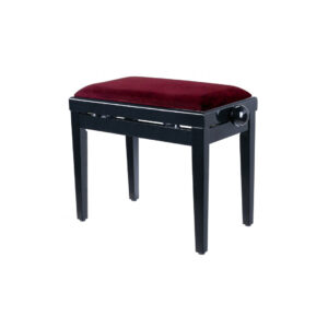 Κάθισμα πιάνου γυαλιστερού χρώματος με άνω μέρος θέσης από μαόνι και ρυθμιζόμενο ύψος. Κλασσική και κομψή εμφάνιση.