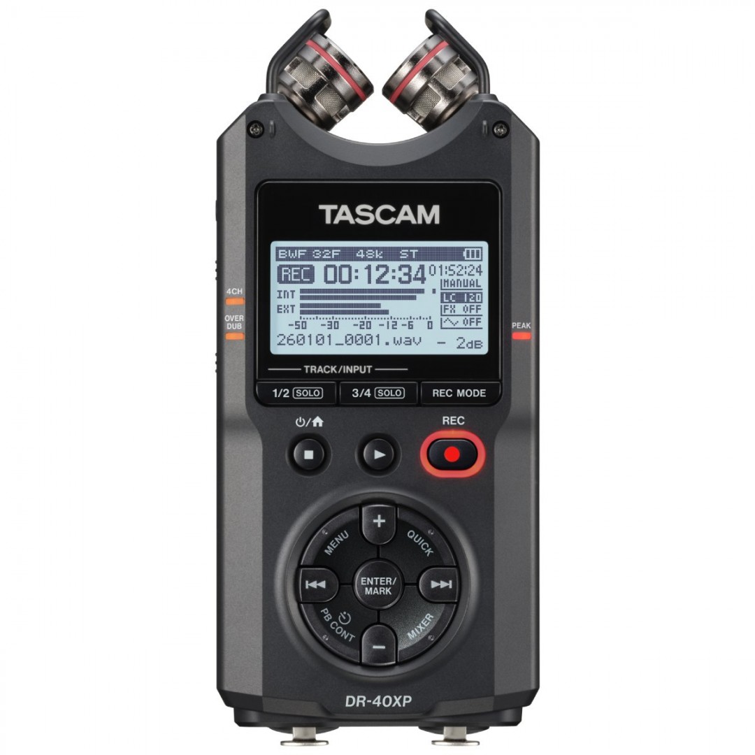 Το Tascam DR-40XP είναι ένας φορητός recorder 4 καναλιών με 32-bit float recording, σχεδιασμένος για δημιουργούς που θέλουν επαγγελματικό ήχο χωρίς πολύπλοκες ρυθμίσεις.